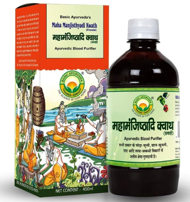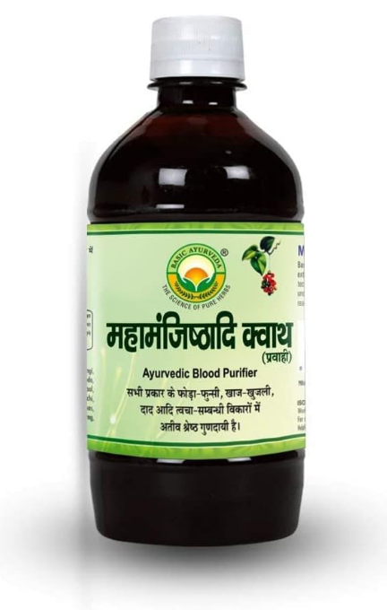 A.K. Maha Manjisthyadi Kwath (450 ml) is an Ayurvedic herbal formulation known for its detoxifying and purifying properties. Made with potent ingredients like Manjistha (Rubia cordifolia), this kwath is used to cleanse the blood, promote healthy skin, and support the body’s natural detox process. It helps with various skin issues such as acne, pigmentation, and rashes while boosting overall immunity. Ideal for daily consumption to improve digestion and promote clear, glowing skin.