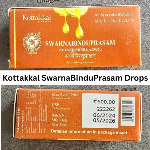 Kottakkal Arya Vaidya Sala SwarnaBinduPrasam Drops (10ml) is a traditional Ayurvedic formulation designed to enhance children’s immunity and cognitive development. This potent herbo-mineral composition combines Swarna Bhasma with carefully selected herbs to promote overall health and well-being.