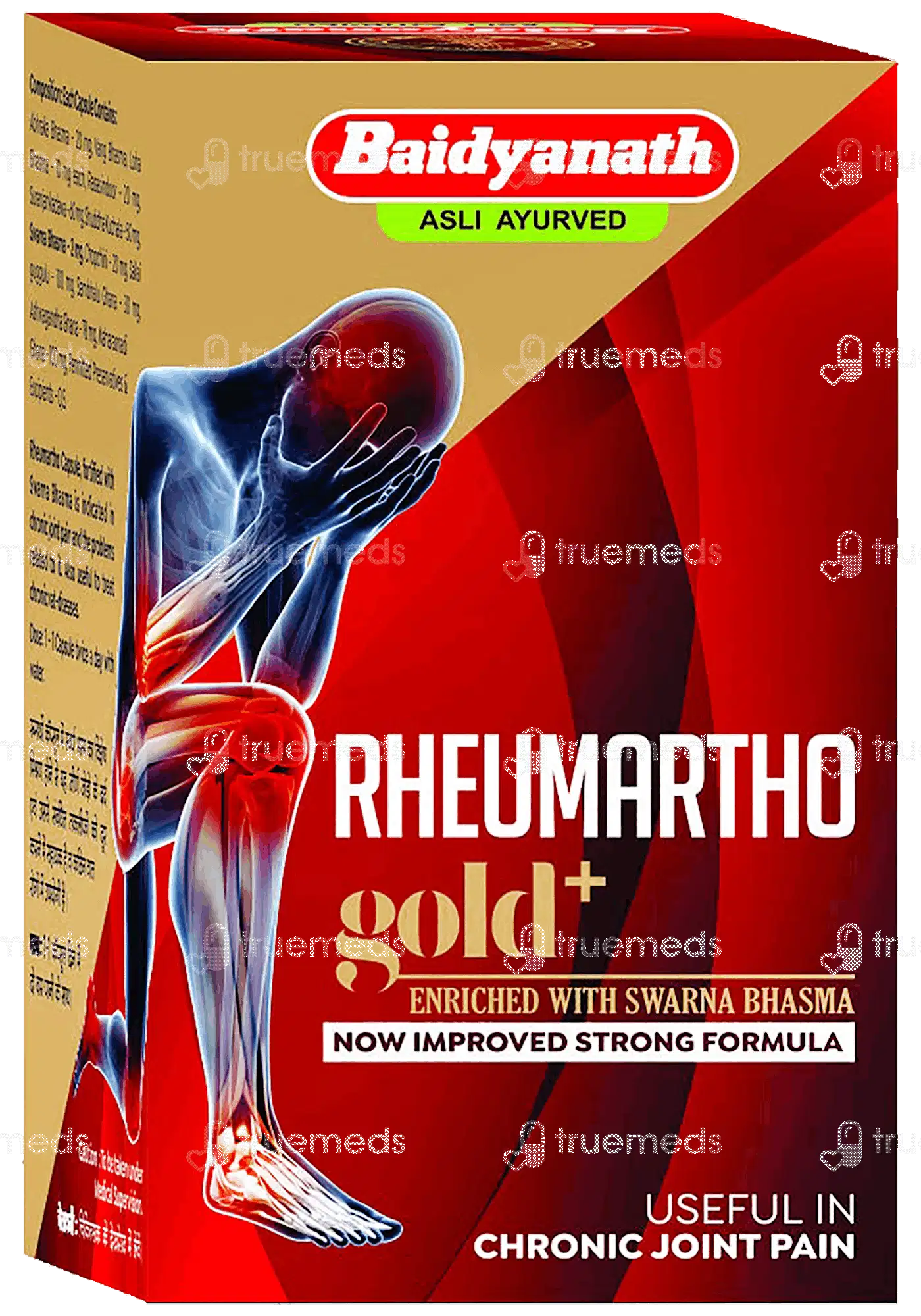 Baidyanath Rheumartho Gold Plus Capsule is an Ayurvedic formulation designed to provide relief from chronic joint pains, inflammation, and stiffness.