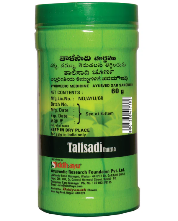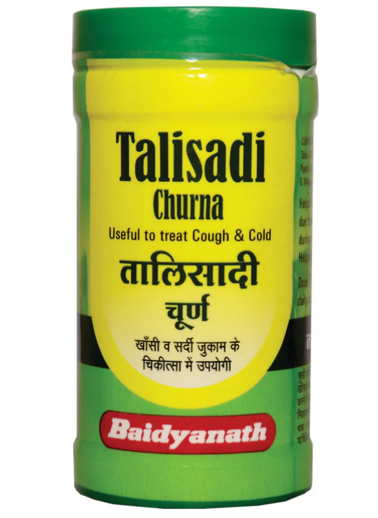 Baidyanath Talisadi Churna is an Ayurvedic blend of eight potent herbs, including Talisa, Pippali, Ginger, Cinnamon, Cardamom, and Banshlochan. This churna is renowned for its efficacy in managing respiratory conditions such as cough, cold, and asthma, owing to its bronchodilator, expectorant, and anti-inflammatory properties. Additionally, it aids in enhancing digestive health by stimulating appetite and alleviating symptoms like bloating and indigestion. Regular use of this churna can bolster immunity and promote overall well-being.