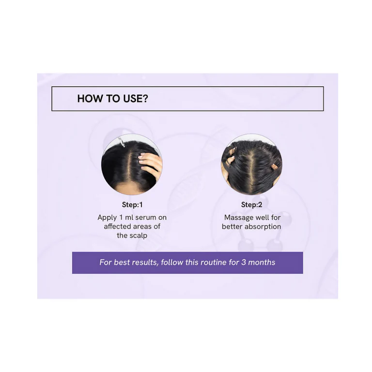 Powered by a blend of Procapil, Redensyl, Biotin, and essential nutrients, the serum works in multiple stages to optimize your hair growth cycle. Redensyl helps stimulate follicle stem cells, promoting the formation of new, healthier strands. Procapil strengthens existing hair, improves blood circulation at the roots, and reduces breakage due to everyday stress or environmental damage. Together, these ingredients enhance follicle activity and help reduce hair fall, making your hair appear denser and more voluminous over time.