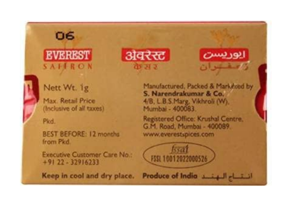 Elevate your cooking with EVEREST Saffron Kesar, a premium spice renowned for its exquisite aroma and vibrant color. This pack contains four 1g sachets, ensuring you have an ample supply for multiple dishes. Saffron, derived from the crocus flower, is celebrated for its ability to enhance the flavor and appearance of various culinary delights. Whether you’re preparing traditional biryanis, luxurious desserts, or aromatic beverages, EVEREST Saffron Kesar adds a touch of elegance and authenticity to your recipes.