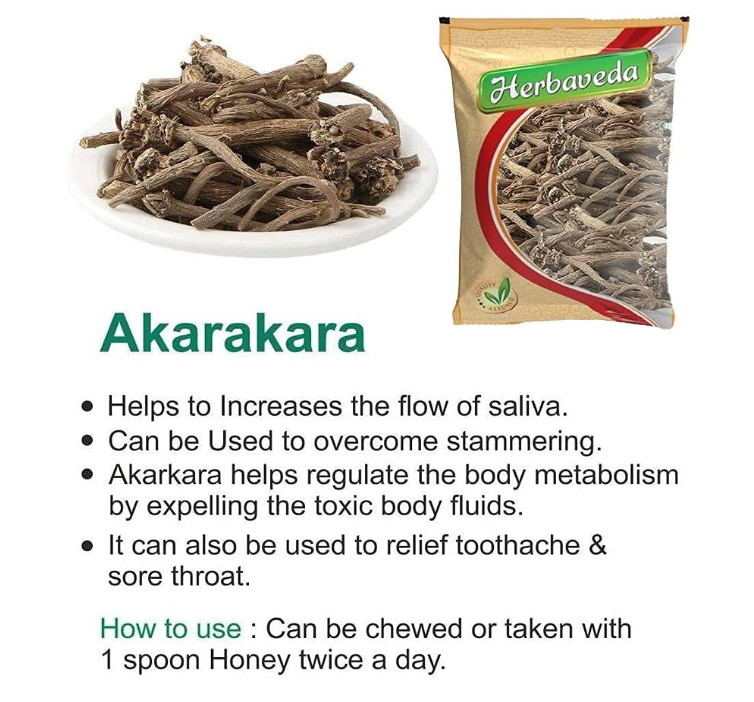 Porwalcart Herbaveda Akarkara Irani (100g) is a pure and natural form of Anacyclus Pyrethrum, commonly known as Pellitory Root. Known for its potent medicinal properties, Akarkara has been used in traditional Ayurvedic practices to improve memory, boost energy levels, and support sexual health. It helps enhance cognitive function, reduces fatigue, and promotes overall vitality. This herbal powder is also used to improve oral health and act as a natural aphrodisiac. 100% pure, with no additives or preservatives.