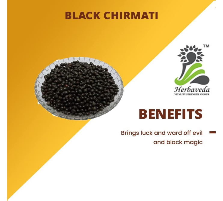 Porwalcart Herbaveda Chirmati Black (100g) – Kali Ratti seeds (Abrus precatorius) used in rituals & folk practices. For external use only. 100% natural; not meant for consumption.