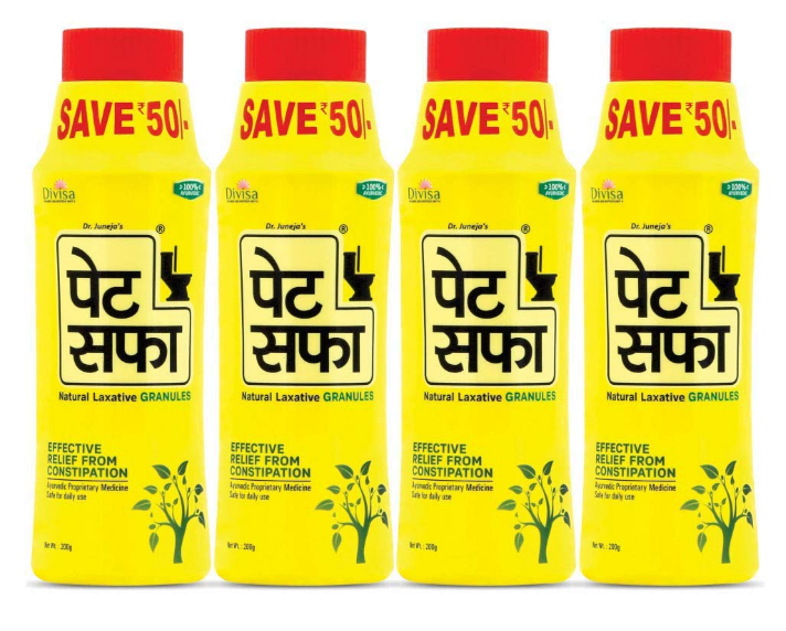 Zeeke Pet Saffa Granules (200g, Pack of 4) is an effective Ayurvedic formulation designed to provide natural relief from constipation and support digestive health. Made with time-tested herbs like Senna, Ajwain, and Isabgol, it works gently yet effectively to promote regular bowel movements and detoxify the system. Free from harmful chemicals, this herbal laxative is safe for regular use and ideal for those seeking a natural, non-habit-forming digestive solution.